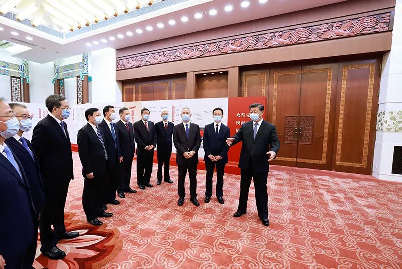 9月30日,黨和國家領(lǐng)導(dǎo)人習(xí)近平、韓正等在北京人民大會堂會見C919大型客機項目團隊代表并參觀項目成果展覽。這是習(xí)近平等參觀項目成果展覽。新華社記者 丁林 攝
