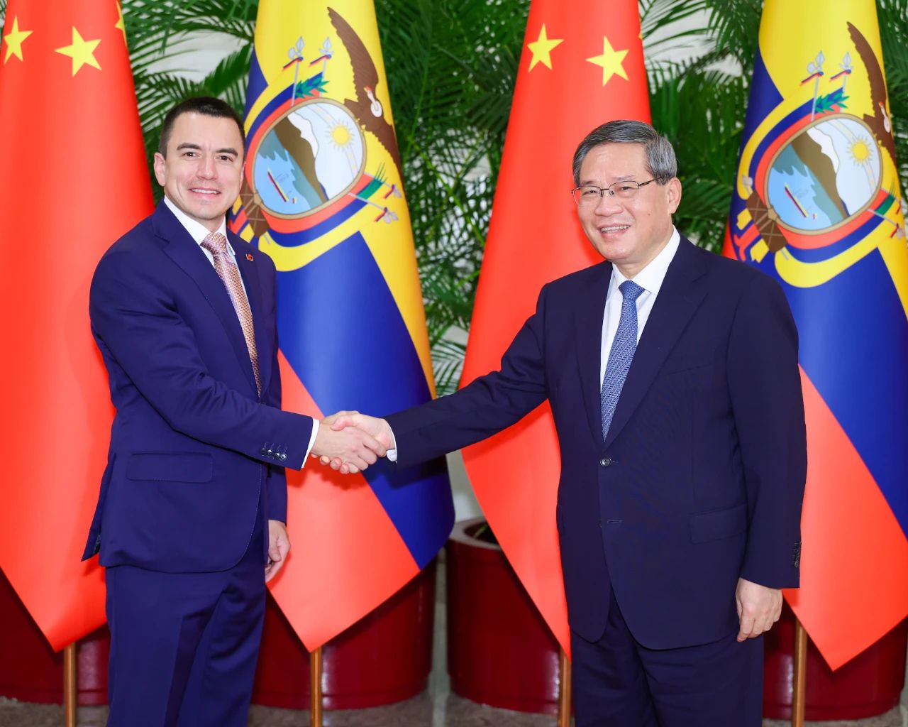 李強(qiáng)指出,中厄同為發(fā)展中國家,都把發(fā)展經(jīng)濟(jì)、改善民生作為重要任務(wù)。中方愿同厄方加強(qiáng)發(fā)展戰(zhàn)略對接,密切“一帶一路”合作,擴(kuò)大雙邊貿(mào)易規(guī)模,深化在清潔能源、基礎(chǔ)設(shè)施、金融等領(lǐng)域合作。中方樂見更多厄方優(yōu)質(zhì)產(chǎn)品輸華,歡迎厄方用好進(jìn)博會等推介平臺。雙方要繼續(xù)加強(qiáng)教育、文化、青年等領(lǐng)域交流合作,便利人員往來,夯實兩國關(guān)系的民意基礎(chǔ)。中方愿同厄瓜多爾等拉美和加勒比國家一道,以共建中拉命運共同體“五大工程”為契機(jī),在實現(xiàn)現(xiàn)代化的道路上攜手前行。中方也愿同厄方加強(qiáng)在聯(lián)合國等多邊機(jī)制的溝通協(xié)調(diào),踐行真正的多邊主義,為維護(hù)世界和平和發(fā)展、推動構(gòu)建人類命運共同體作出積極貢獻(xiàn)。
