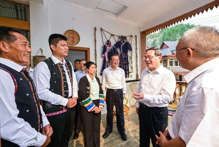 4月24日至26日,中共中央政治局常委、國務(wù)院總理李強(qiáng)在廣西、云南調(diào)研。這是4月26日,李強(qiáng)在云南西雙版納勐臘縣勐臘鎮(zhèn)補(bǔ)蚌村與脫貧戶、村干部和村民代表深入交流。新華社記者 饒愛民 攝