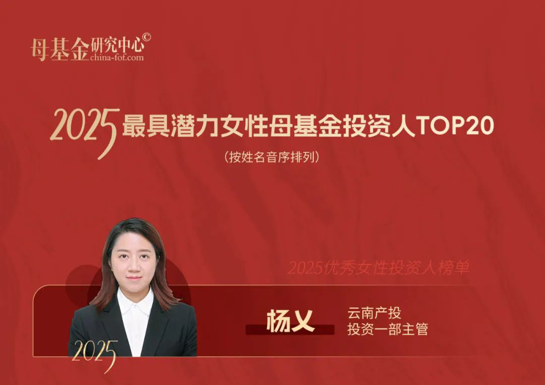 投資中的“她”力量|集團旗下云南產(chǎn)投公司楊乂榮獲《2025最具潛力女性母基金投資人TOP20》
