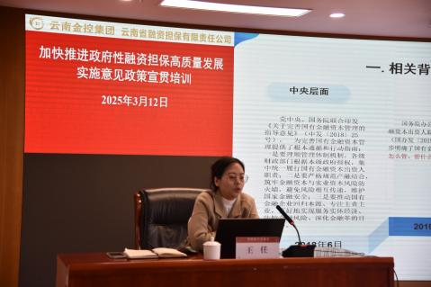 3月12日,在省財(cái)政廳的高度重視和有力指導(dǎo)下,云南金控集團(tuán)所屬省融資擔(dān)保公司在昆明順利舉辦政策宣貫培訓(xùn),通過認(rèn)真學(xué)習(xí)領(lǐng)會(huì)政策文件精神和工作部署要求,進(jìn)一步統(tǒng)一思想,提高認(rèn)識(shí),推動(dòng)改革政策貫徹落實(shí)。省財(cái)政廳金融處、16個(gè)州市財(cái)政局(金融辦)、省融資擔(dān)保公司及各州市19家政府性融資擔(dān)保機(jī)構(gòu)參加培訓(xùn)。