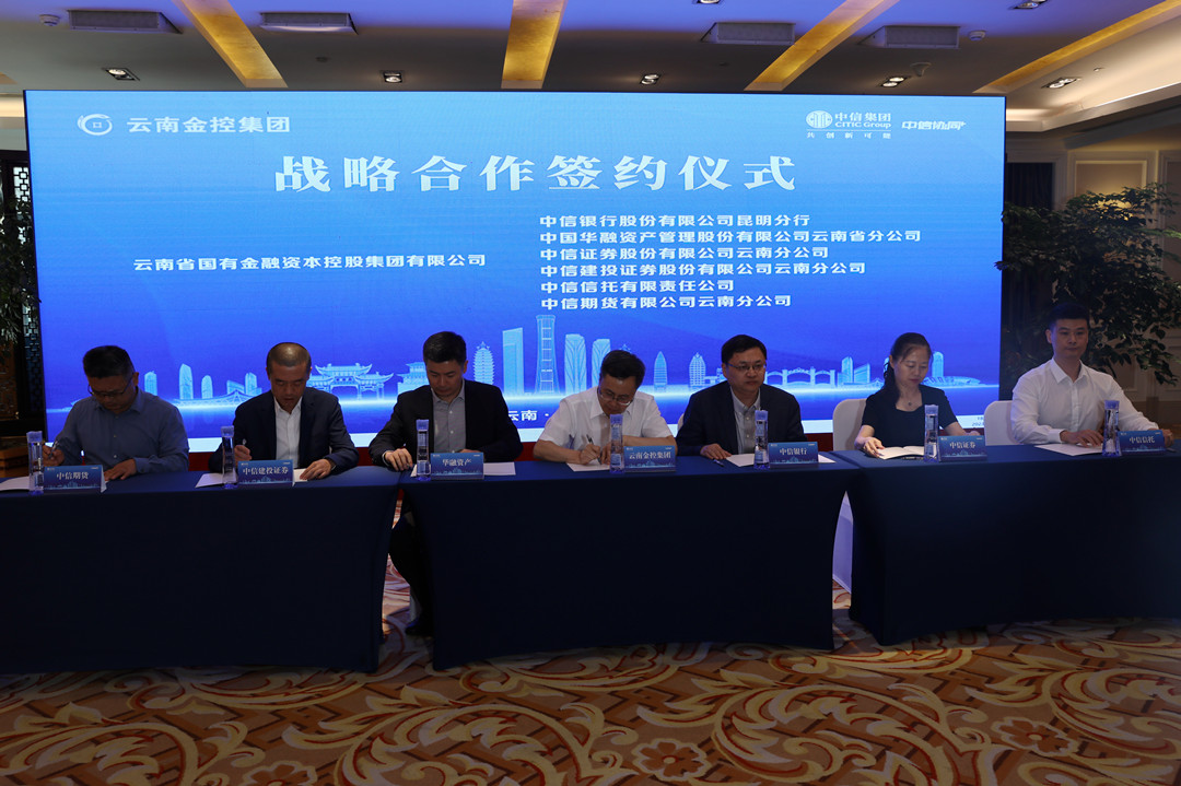 9月5日,集團總裁葉智勇率隊與中信集團協(xié)同委員會云南區(qū)域分會成員單位就發(fā)揮中信集團協(xié)同優(yōu)勢、進一步深化各領(lǐng)域全面合作舉行座談,并與中信集團在滇金融聯(lián)合體6家單位(中信銀行、中信證券、華融資產(chǎn)、中信建投、中信信托、中信期貨)簽訂戰(zhàn)略合作協(xié)議。中信集團業(yè)務(wù)協(xié)同部副總經(jīng)理任霞見證簽約。