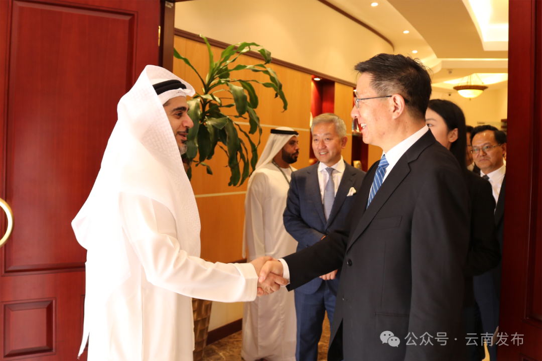 在阿聯(lián)酋期間,王予波會見阿布扎比經(jīng)濟(jì)發(fā)展局局長、阿聯(lián)酋工商會主席扎阿比,阿經(jīng)濟(jì)部次長薩利赫和阿布扎比港務(wù)集團(tuán)首席執(zhí)行官沙姆西,就落實(shí)習(xí)近平主席和穆罕默德總統(tǒng)達(dá)成的重要共識,推動“一帶一路”南向國際陸海大通道建設(shè),拓展滇阿在產(chǎn)能、農(nóng)產(chǎn)品貿(mào)易、教育、旅游等方面的合作深入交流探討;出席中國·云南—阿聯(lián)酋·迪拜特色商品推介會,向阿各界推介云南特色產(chǎn)業(yè)和優(yōu)勢農(nóng)產(chǎn)品;調(diào)研迪拜中國學(xué)校、哈利法港和中阿產(chǎn)能合作示范園,看望云南在阿企業(yè)代表。