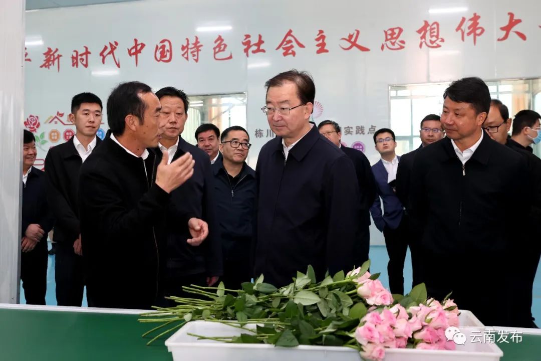 在云秀智慧花卉科技示范園調(diào)研時,王寧鼓勵花卉企業(yè)持續(xù)創(chuàng)新探索,研發(fā)培育更多具有自主知識產(chǎn)權的花卉新品種。