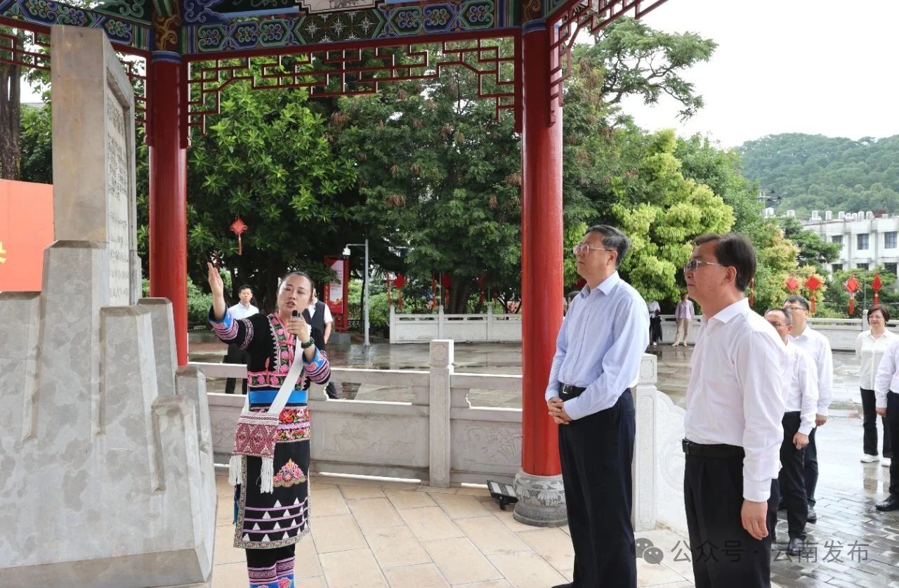 兩地同志一同參觀普洱民族團結(jié)誓詞碑。