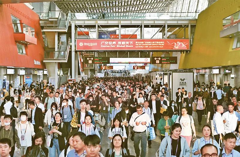 第133屆中國(guó)進(jìn)出口商品交易會(huì)(廣交會(huì))線下展于2023年4月15日至5月5日分3期舉辦,同時(shí)線上平臺(tái)全年常態(tài)化運(yùn)營(yíng)。本屆廣交會(huì)展覽面積、參展企業(yè)數(shù)量均創(chuàng)歷史新高,吸引220多個(gè)國(guó)家和地區(qū)的數(shù)十萬采購商報(bào)名參會(huì)。圖為4月26日拍攝的廣交會(huì)現(xiàn)場(chǎng)。 中新社記者 陳楚紅/攝