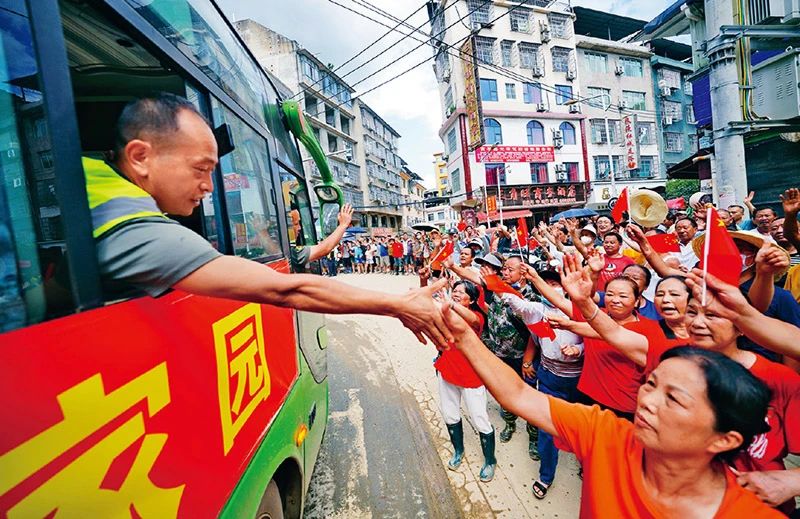 黨的十八大以來,中國共產黨人繼承和發(fā)揚黨的優(yōu)良傳統和作風,始終保持同人民群眾的血肉聯系。近期,貴州省榕江縣發(fā)生特大洪澇災害,黨員干部沖鋒在前,構筑起保護群眾、守護家園的堅固防線。圖為2025年7月3日,當地群眾自發(fā)涌上街頭,送別救援隊伍,表達感激之情。 新華社發(fā) 楊武魁/攝