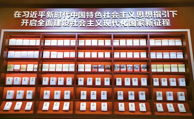 圖為中國(guó)共產(chǎn)黨歷史展覽館展出的習(xí)近平總書(shū)記的部分重要著作以及學(xué)習(xí)闡釋習(xí)近平新時(shí)代中國(guó)特色社會(huì)主義思想的部分重點(diǎn)圖書(shū)。劉新武/攝