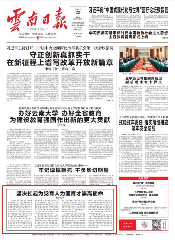 賡續(xù)百年榮光,再啟奮斗新程。偉大事業(yè)、偉大夢想呼喚更堅實的優(yōu)秀人才支撐。讓我們更加緊密地團結(jié)在以習(xí)近平同志為核心的黨中央周圍,牢記習(xí)近平總書記的殷殷囑托,在新征程上矢志為黨育人、為國育才,為建設(shè)教育強國貢獻更大力量,奮力譜寫好中國式現(xiàn)代化的云南篇章。