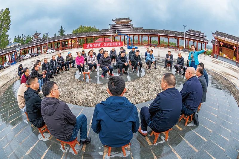 2022年10月27日,貴州省黔東南州錦屏縣新化鄉(xiāng)新化寨村文化廣場(chǎng),縣政協(xié)部分委員、鄉(xiāng)政府部分黨員干部、村干部及村民代表積極參與協(xié)商“空地治理”討論。人民圖片 李必祥/攝