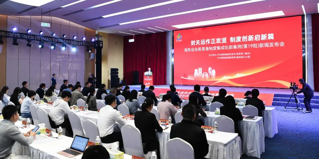 2025年2月19日,海南自由貿(mào)易港制度集成創(chuàng)新案例(第19批)新聞發(fā)布會(huì)在??谂e行,加工增值內(nèi)銷免關(guān)稅政策從“試驗(yàn)點(diǎn)”到“試驗(yàn)田”等6項(xiàng)案例入選這批案例。圖為當(dāng)日新聞發(fā)布會(huì)現(xiàn)場(chǎng)。新華社記者 楊冠宇/攝