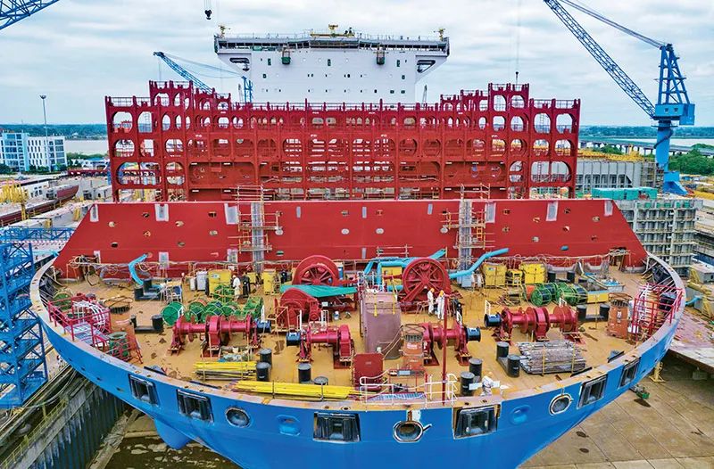 主題教育開展以來,各地區(qū)各部門堅持以習(xí)近平新時代中國特色社會主義思想為指導(dǎo),以強化理論學(xué)習(xí)指導(dǎo)發(fā)展實踐,以深化調(diào)查研究推動解決發(fā)展難題,把學(xué)習(xí)和調(diào)研落實到完成黨的二十大部署的各項任務(wù)中去,形成推動高質(zhì)量發(fā)展的強大動力。圖為2023年5月7日,江蘇揚州中遠(yuǎn)海運重工有限公司開足馬力抓生產(chǎn)(無人機照片)。 新華社發(fā) 周社根/攝