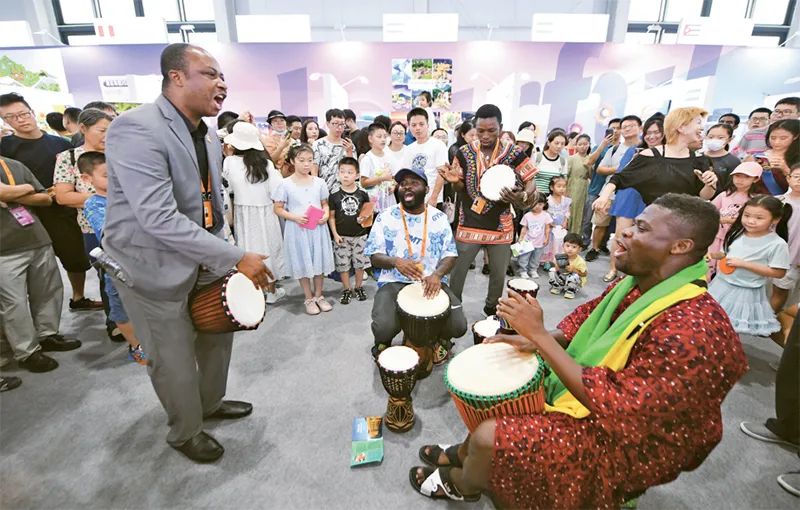 2023年中國國際服務(wù)貿(mào)易交易會(huì)上舉辦“一帶一路”共建國家特色文化展示活動(dòng),通過特色文藝演出、文化推介、護(hù)照打卡等一系列活動(dòng),展現(xiàn)共建國家文化風(fēng)采。圖為展示活動(dòng)上,加納共和國駐華大使館展區(qū)的工作人員在現(xiàn)場即興表演。 新華社記者 鞠煥宗/攝