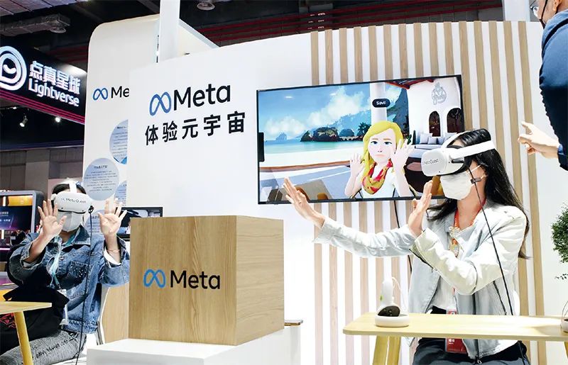 中國國際進口博覽會連續(xù)舉辦5年,已經(jīng)成為中國構(gòu)建新發(fā)展格局的窗口、推動高水平開放的平臺、全球共享的國際公共產(chǎn)品。圖為2022年11月7日,在第五屆進博會技術裝備展區(qū)的人工智能專區(qū),體驗者借助VR頭戴設備感受在虛擬工作空間“隔空擊掌”。 新華社記者 侯俊/攝