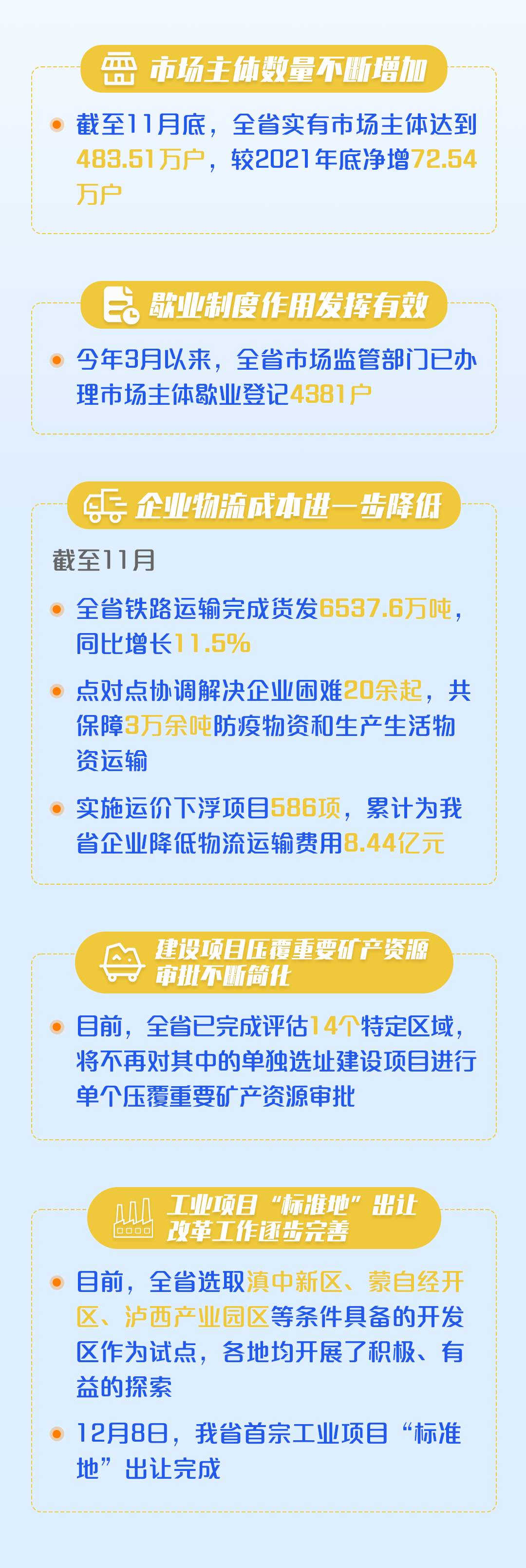?雖然我省優(yōu)化營(yíng)商環(huán)境工作取得了一定成效,但是當(dāng)前經(jīng)濟(jì)運(yùn)行面臨一些突出矛盾和問(wèn)題,市場(chǎng)主體特別是中小微企業(yè)、個(gè)體工商戶生產(chǎn)經(jīng)營(yíng)困難依然較多。10月19日,云南省人民政府辦公廳印發(fā)了《關(guān)于進(jìn)一步優(yōu)化營(yíng)商環(huán)境降低市場(chǎng)主體制度性交易成本的若干措施的通知》,推動(dòng)降低市場(chǎng)主體準(zhǔn)入成本、推動(dòng)減輕市場(chǎng)主體經(jīng)營(yíng)負(fù)擔(dān)、推動(dòng)降低市場(chǎng)主體辦事成本、切實(shí)保護(hù)市場(chǎng)主體合法權(quán)益、切實(shí)穩(wěn)定市場(chǎng)主體政策預(yù)期,幫助市場(chǎng)主體解難題、渡難關(guān)、復(fù)元?dú)?、增活力,加力鞏固?jīng)濟(jì)恢復(fù)發(fā)展基礎(chǔ)。