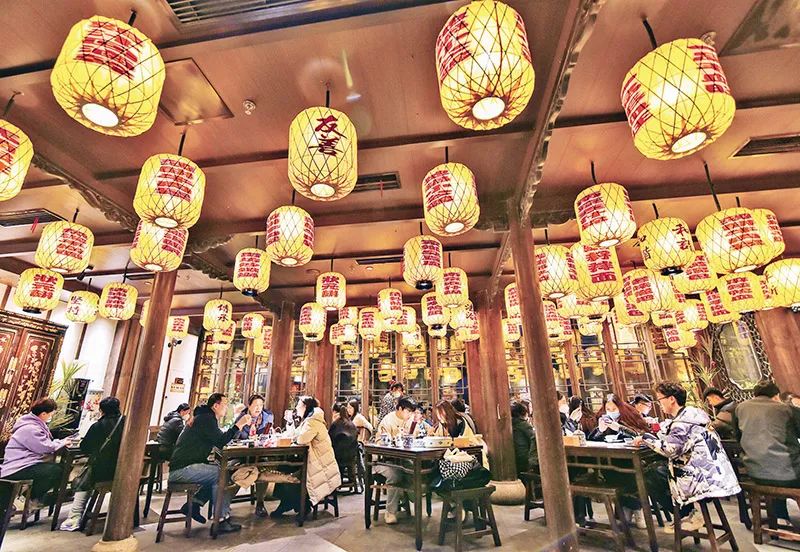 2022年,我國經(jīng)濟總量再上新臺階,國內(nèi)生產(chǎn)總值達(dá)121萬億元。人民生活不斷改善,城鄉(xiāng)居民收入穩(wěn)步增長,人均國內(nèi)生產(chǎn)總值保持在1.2萬美元以上。圖為2023年1月31日,游客在南京市老門東景區(qū)一家餐廳品嘗金陵風(fēng)味美食。新華社發(fā) 方東旭/攝