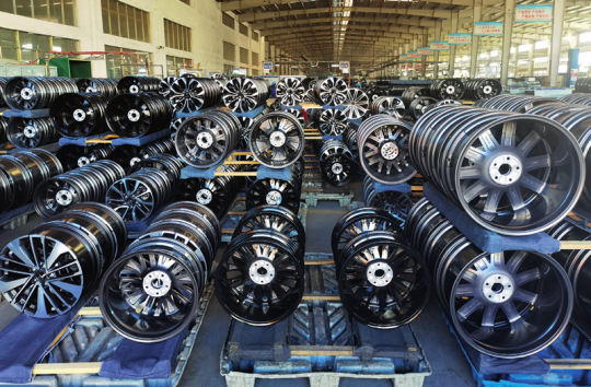 曲靖市富源縣工業(yè)園區(qū),云南富源今飛輪轂制造有限公司利用云鋁澤鑫鋁業(yè)電解的鋁液,生產(chǎn)汽車輪轂 陳永強 攝