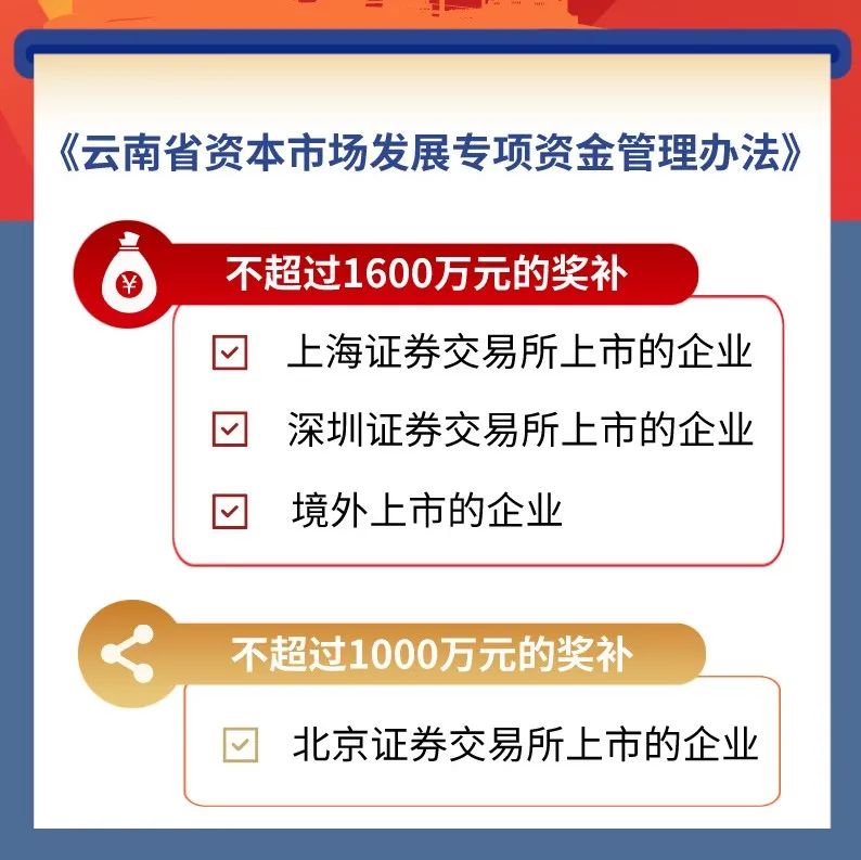 印發(fā)《云南省資本市場發(fā)展專項資金管理辦法》,獎補標準居全國前列,為我省資本市場發(fā)展提供更為完善的資金政策保障。