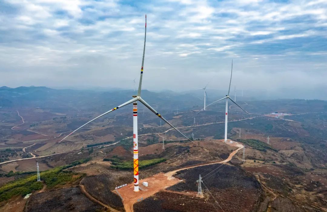 12月23日,位于文山丘北的中國大唐集團有限公司錦屏西風(fēng)電項目172臺風(fēng)電機組全部并網(wǎng)發(fā)電。新華社記者 陳欣波 攝