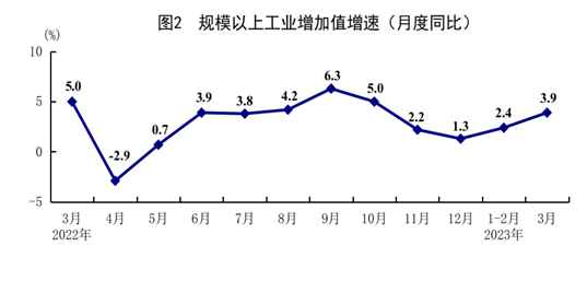 一季度,全國規(guī)模以上工業(yè)增加值同比增長3.0%,比上年四季度加快0.3個(gè)百分點(diǎn)。分三大門類看,采礦業(yè)增加值增長3.2%,制造業(yè)增長2.9%,電力、熱力、燃?xì)饧八a(chǎn)和供應(yīng)業(yè)增長3.3%。裝備制造業(yè)增加值增長4.3%,比1-2月份加快2.5個(gè)百分點(diǎn)。分經(jīng)濟(jì)類型看,國有控股企業(yè)增加值增長3.3%;股份制企業(yè)增長4.3%,外商及港澳臺(tái)商投資企業(yè)下降2.7%;私營企業(yè)增長2.0%。分產(chǎn)品看,太陽能電池、新能源汽車產(chǎn)量分別增長53.2%、22.5%。3月份,規(guī)模以上工業(yè)增加值同比增長3.9%,比1-2月份加快1.5個(gè)百分點(diǎn);環(huán)比增長0.12%。3月份,制造業(yè)采購經(jīng)理指數(shù)為51.9%,企業(yè)生產(chǎn)經(jīng)營活動(dòng)預(yù)期指數(shù)為55.5%。1-2月份,全國規(guī)模以上工業(yè)企業(yè)實(shí)現(xiàn)利潤總額8872億元,同比下降22.9%。
