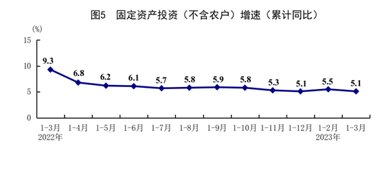 一季度,全國固定資產(chǎn)投資(不含農(nóng)戶)107282億元,同比增長5.1%,與上年全年持平。分領(lǐng)域看,基礎(chǔ)設(shè)施投資增長8.8%,制造業(yè)投資增長7.0%,房地產(chǎn)開發(fā)投資下降5.8%。全國商品房銷售面積29946萬平方米,下降1.8%;商品房銷售額30545億元,增長4.1%。分產(chǎn)業(yè)看,第一產(chǎn)業(yè)投資增長0.5%,第二產(chǎn)業(yè)投資增長8.7%,第三產(chǎn)業(yè)投資增長3.6%。民間投資增長0.6%。高技術(shù)產(chǎn)業(yè)投資增長16.0%,其中高技術(shù)制造業(yè)和高技術(shù)服務(wù)業(yè)投資分別增長15.2%、17.8%。高技術(shù)制造業(yè)中,電子及通信設(shè)備制造業(yè)、醫(yī)療儀器設(shè)備及儀器儀表制造業(yè)投資分別增長20.7%、19.9%;高技術(shù)服務(wù)業(yè)中,電子商務(wù)服務(wù)業(yè)、科技成果轉(zhuǎn)化服務(wù)業(yè)投資分別增長51.5%、51.3%。社會(huì)領(lǐng)域投資增長8.3%,其中衛(wèi)生、教育投資分別增長21.6%、6.2%。3月份,固定資產(chǎn)投資(不含農(nóng)戶)環(huán)比下降0.25%。