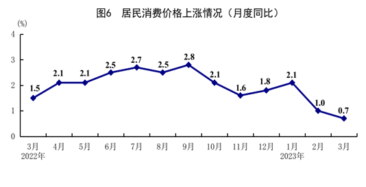 一季度,全國居民消費(fèi)價(jià)格(CPI)同比上漲1.3%。分類別看,食品煙酒價(jià)格上漲2.9%,衣著價(jià)格上漲0.7%,居住價(jià)格下降0.2%,生活用品及服務(wù)價(jià)格上漲1.2%,交通通信價(jià)格上漲0.1%,教育文化娛樂價(jià)格上漲1.7%,醫(yī)療保健價(jià)格上漲0.9%,其他用品及服務(wù)價(jià)格上漲2.7%。在食品煙酒價(jià)格中,鮮果價(jià)格上漲11.0%,豬肉價(jià)格上漲8.5%,糧食價(jià)格上漲2.5%,鮮菜價(jià)格下降2.9%??鄢称泛湍茉磧r(jià)格后的核心CPI同比上漲0.8%。3月份,全國居民消費(fèi)價(jià)格同比上漲0.7%,環(huán)比下降0.3%。